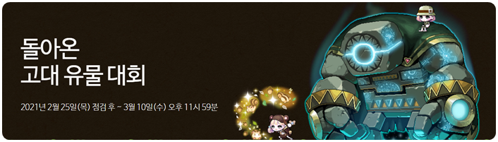 현재 메이플스토리에는 '돌아온 고대 유물 대회' 이벤트가 진행 중인데요!
