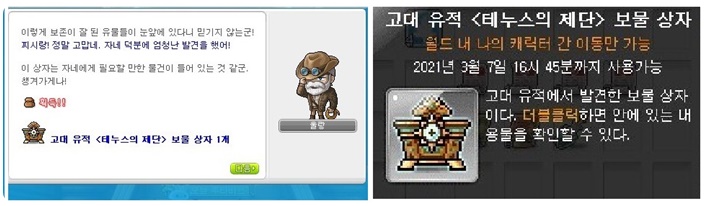 '고대 유적 보물 상자'는 창고를 통해 이동 가능하니 참고해주세요.
