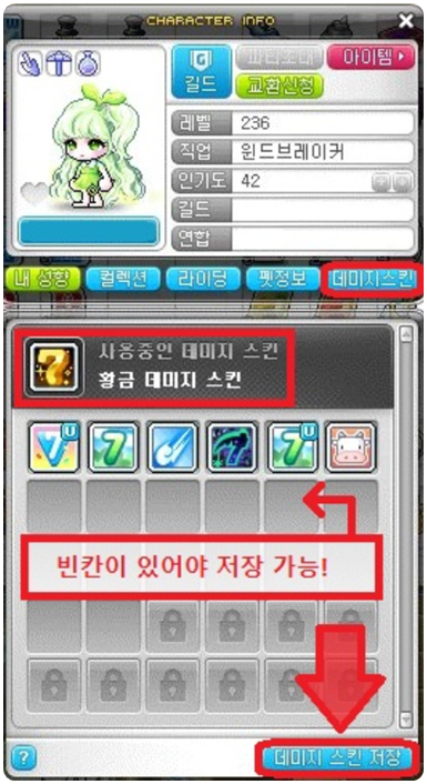 데미지 스킨 등록 시 주의할 점은 현재 사용 중인 데미지 스킨이 사라지는 상황인데요.