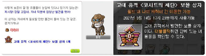'고대 유적 보물 상자'는 창고를 통해 이동 가능하니 참고해주세요.