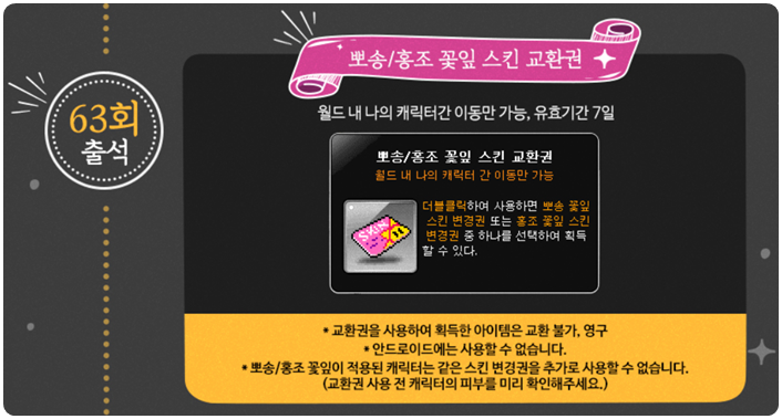 '뽀송/홍조 꽃잎 스킨 교환권'을 얻을 수 있습니다.