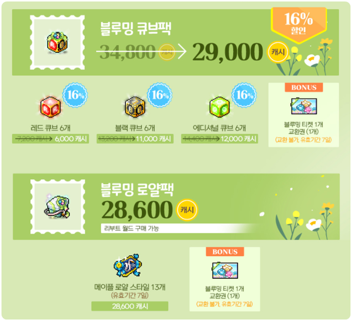 판매 기간 동안 '블루밍 큐브팩' 또는 '블루밍 로얄팩' 구매 시