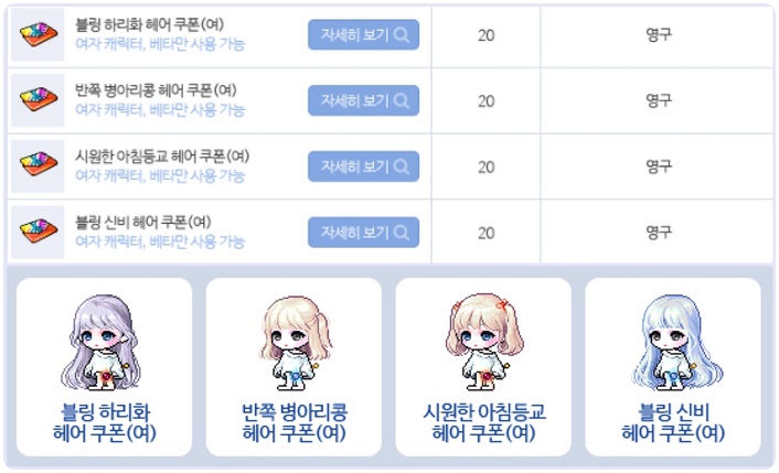 반쪽 병아리콩 헤어 쿠폰 - (블루밍 티켓 20개)