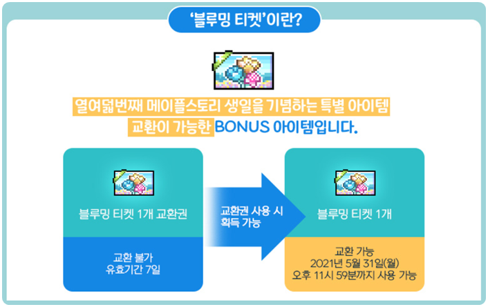 블루밍 티켓은 18주년을 기념하여 특별 아이템으로