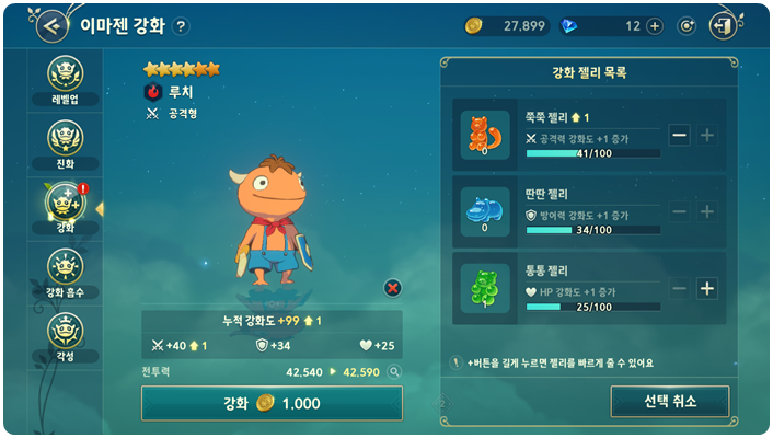 이마젠 강화 +100 달성 시 마스터 도감이 하나 채워집니다.
