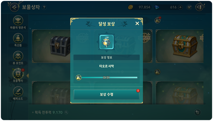 타오르 사막에서 스텟을 올려주는 보물상자는 총 3개입니다.
