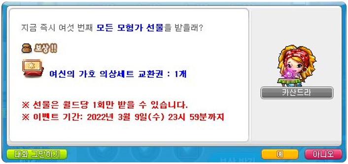 이렇게 메이플스토리 모험가 리마스터 이벤트 보상인