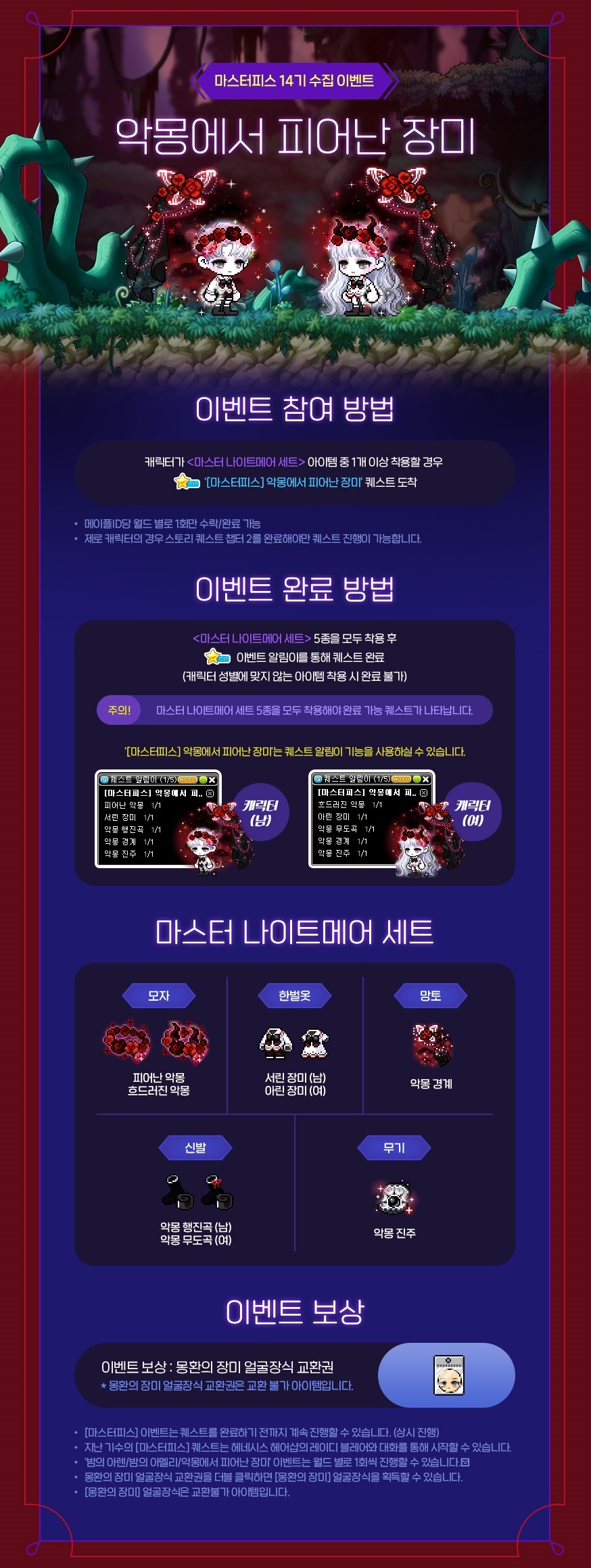 '악몽에서 피어난 장미의 아름다움을 담은 마스터피스 14기 나이트메어 세트를 만나보세요.'