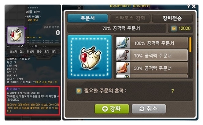 (참고) 강화도 가능하며, 잠재옵션 및 에디셔널도 부여할 수 있습니다.