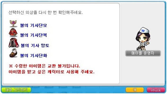 교환권 사용 시 캐릭터 성별에 알맞은 의상 세트를 선택해주세요.