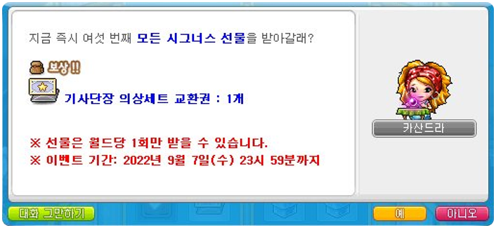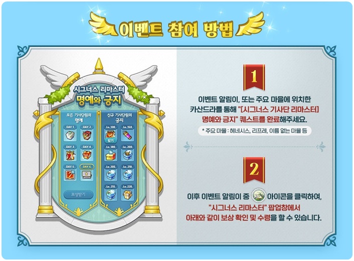 이렇게 메이플스토리 시그너스 기사단 리마스터 이벤트 보상인