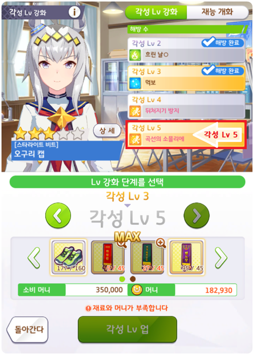 오구리 캡 각성 Lv 5 달성 시