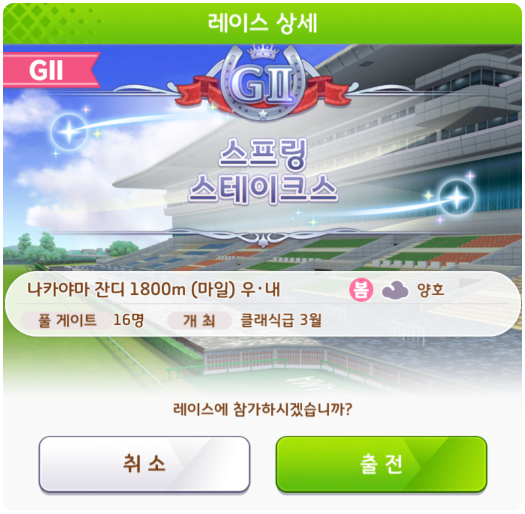 스프링 스테이크스 → G II 나카야마 잔디 1800m (마일)