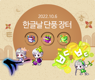 메이플스토리가 한글날을 기념하여 한글날 단풍 장터를 진행 중인데요!