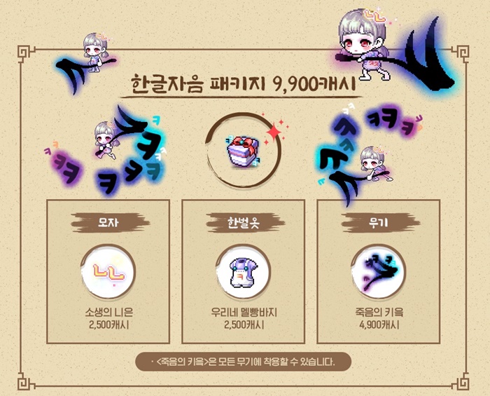 이렇게 메이플스토리 한글날 코디 패키지를 구경해봤습니다.