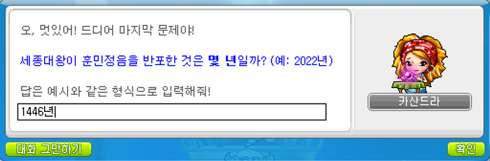3. 문제를 맞힌 후 다시 말을 걸면 이벤트 보상을 받을 수 있습니다.