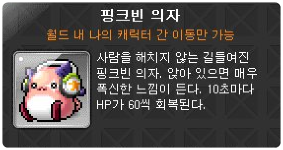 이렇게 메이플스토리 메이프릴 캔디샵의 핑크빈 의자를 구경해 봤습니다.