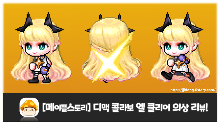 이렇게 메이플스토리 디제이 맥스 콜라보 엘 클리어 의상 세트를 구경해 봤습니다.