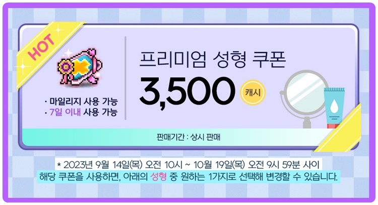2023년 9월 14일 업데이트를 통해 프리미엄 헤어 및 성형 쿠폰이 추가되었는데요!