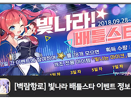 | [벽람항로] 빛나라 배틀스타 이벤트 정보! (0) | 2018.10.06 |