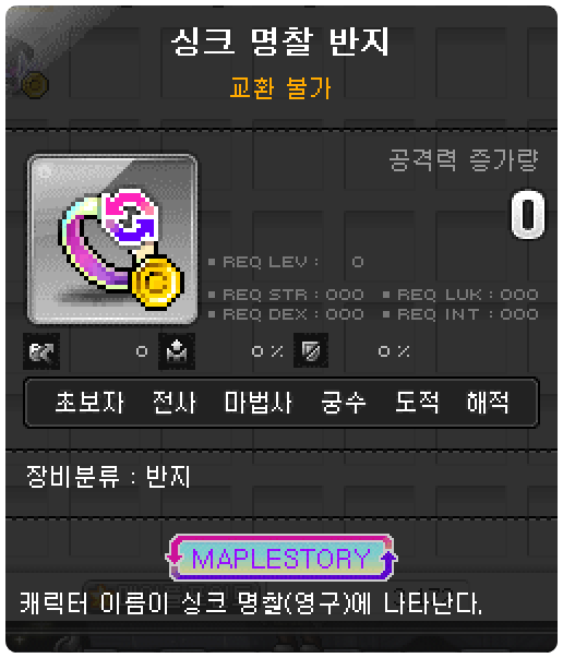 이렇게 메이플스토리의 싱크 명찰 & 말풍선 반지를 구경해봤습니다.
