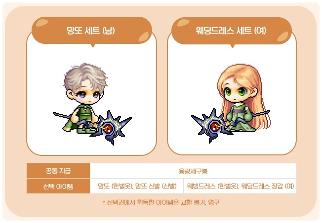 선택권 사용 시 캐릭터 성별에 알맞은 의상을 선택해서 받아주세요!