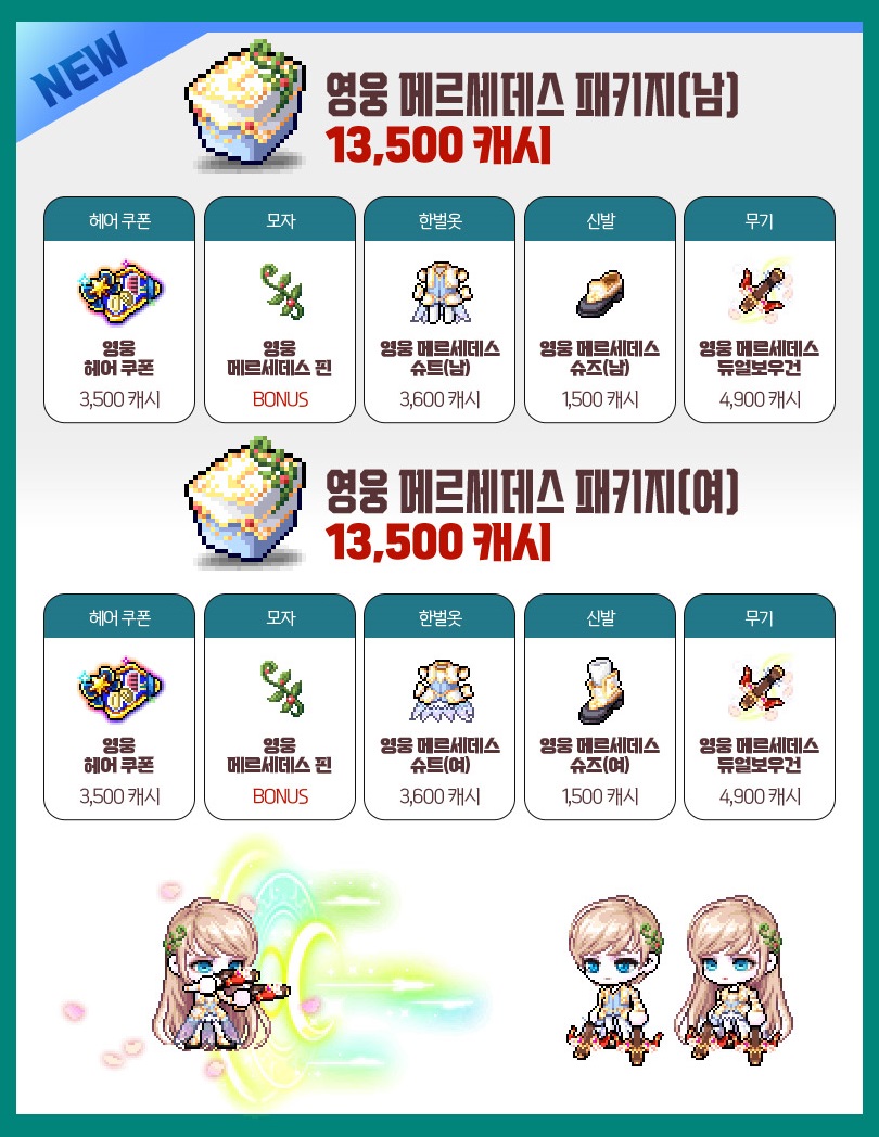 기간 동안 영웅 코디 패키지를 캐시샵에서 구매할 수 있습니다.