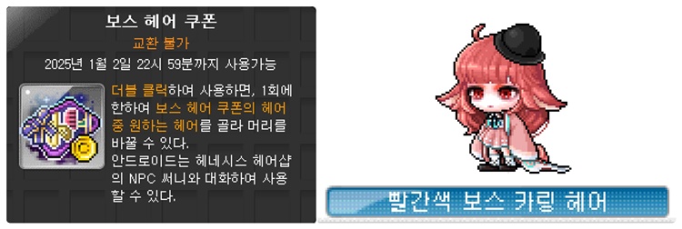 '보스 헤어 쿠폰'은 캐시샵에서 5,500 캐시로 구매할 수 있습니다.