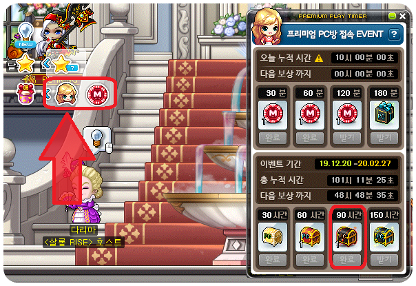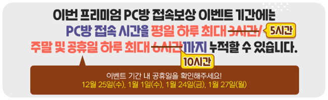 현재 메이플스토리는 방학 시즌 이벤트인 프리미엄 PC방 접속 보상 이벤트가 진행 중입니다.