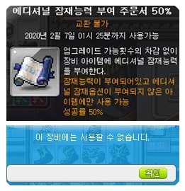 유니크 등급의 잠재능력으로 아래와 같은 옵션을 가지고 있으며 변경이 불가능합니다.