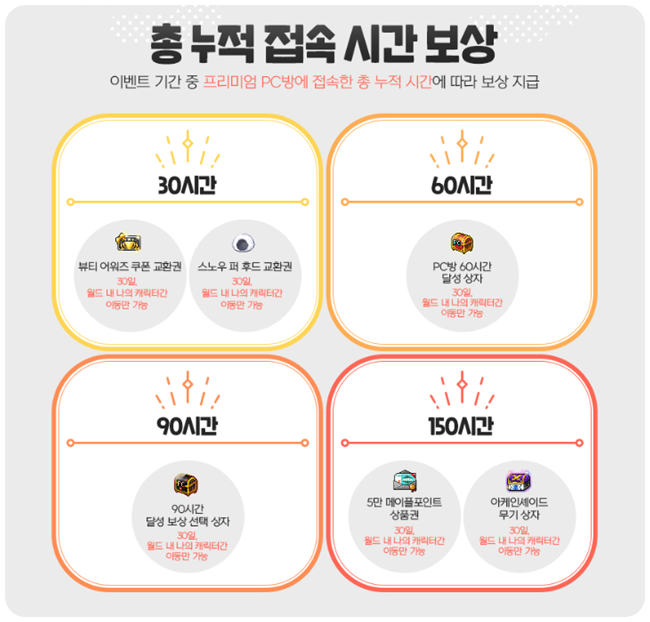 이렇게 메이플스토리 프리미엄 PC방 접속 보상인 피앱솔에 대해 알아보았는데요!