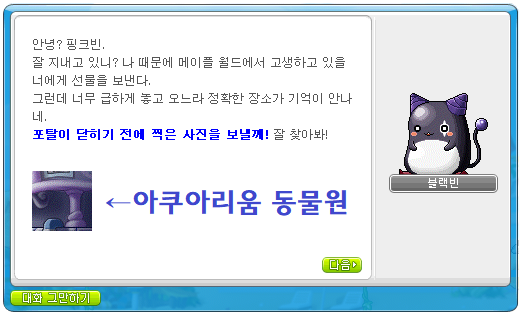 퀘스트를 완료하면 블랙빈의 선물 '핑크빈 후디/꼬리 교환권'을 얻을 수 있습니다.