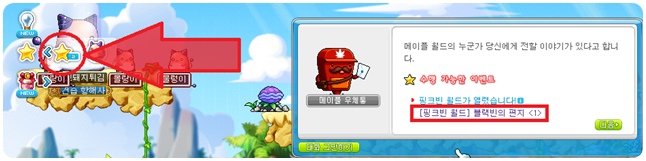 퀘스트는 핑크빈 캐릭터로 접속 후 왼쪽 이벤트 알리미(★)를 통해 받아주시면 됩니다.