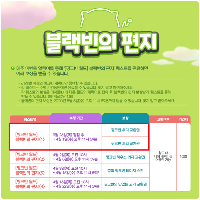 최근 핑크빈 월드에 블랙빈의 편지 1주차 이벤트가 시작됐는데요!