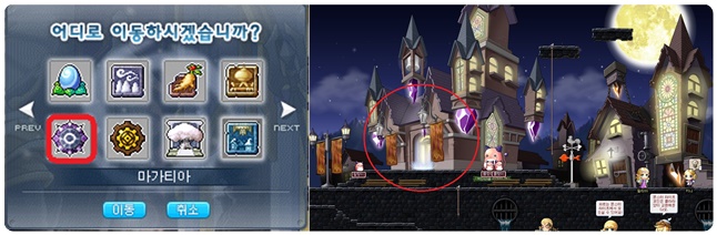 마가티아에 도착 후 가장 왼쪽에 있는 크리스탈이 3개 있는 집으로 들어가 주세요.