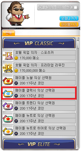 다양한 메이플 기념 의상을 구매할 수 있습니다.