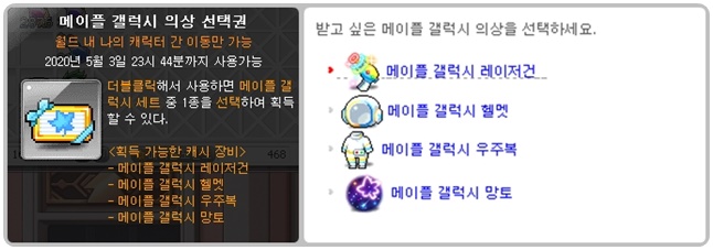 '메이플 갤럭시 의상 선택권' 1개를 구매할 수 있습니다.