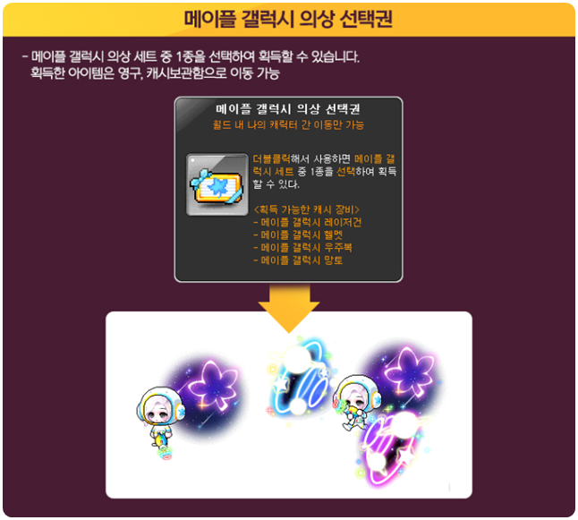 메이플 갤럭시 의상을 구경해보도록 하겠습니다.