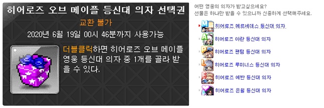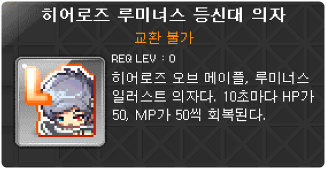 오늘은 호텔 메이플 메소샵에서 구매 가능한 '히어로즈 오브 메이플 등신대 의자'를 알아보겠습니다.