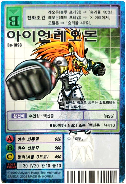 "백수의 왕" 레오몬의 데이터를 계승하는 아이언레오몬이기에 정의에 대한 강한 의지로 터빈을 극한까지 고속 회전시키고 있다.