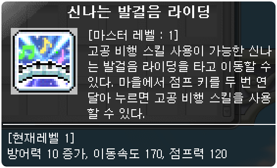 이렇게 메이플스토리 AWAKE 메소상점에서 구매가능한 신나는 발걸음 라이딩을 구경해봤습니다.