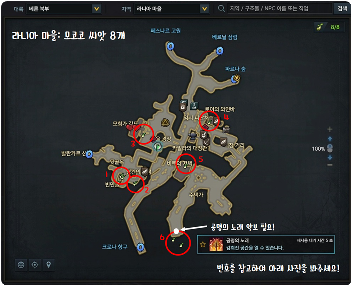 오늘은 베른 북부에 위치한 라니아 마을 모코코 씨앗 위치를 알아보겠습니다.