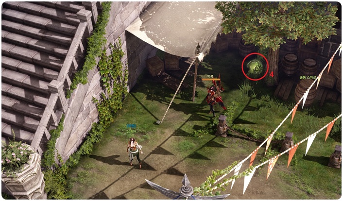 3. 모험가 길드 입구에 아래쪽에 숨겨진 모코코 씨앗 발견! (1개)