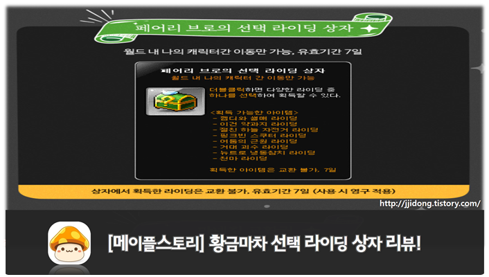 이렇게 메이플스토리 페어리 브로의 선택 라이딩 상자에 대해 알아보았습니다.
