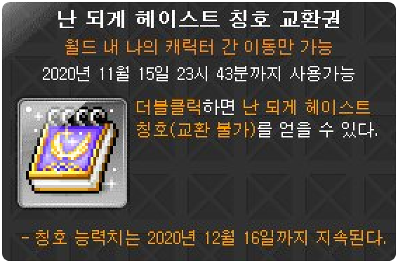 헤이스트 칭호 교환권은 창고를 통해 이동 가능하며 사용 시 이동이 불가능합니다.